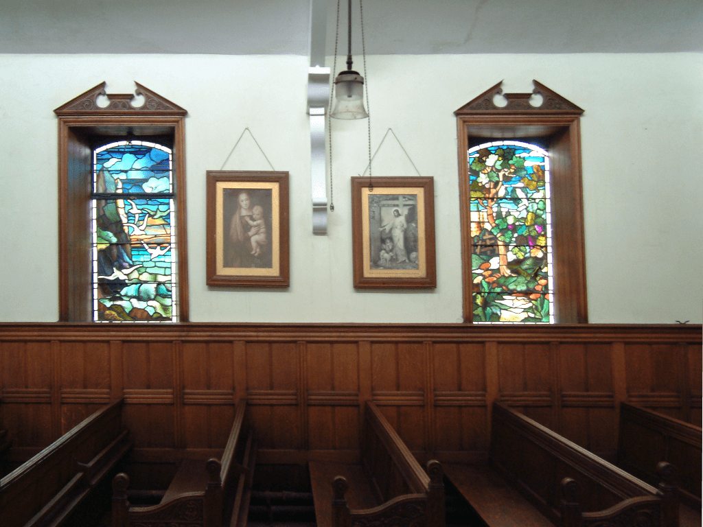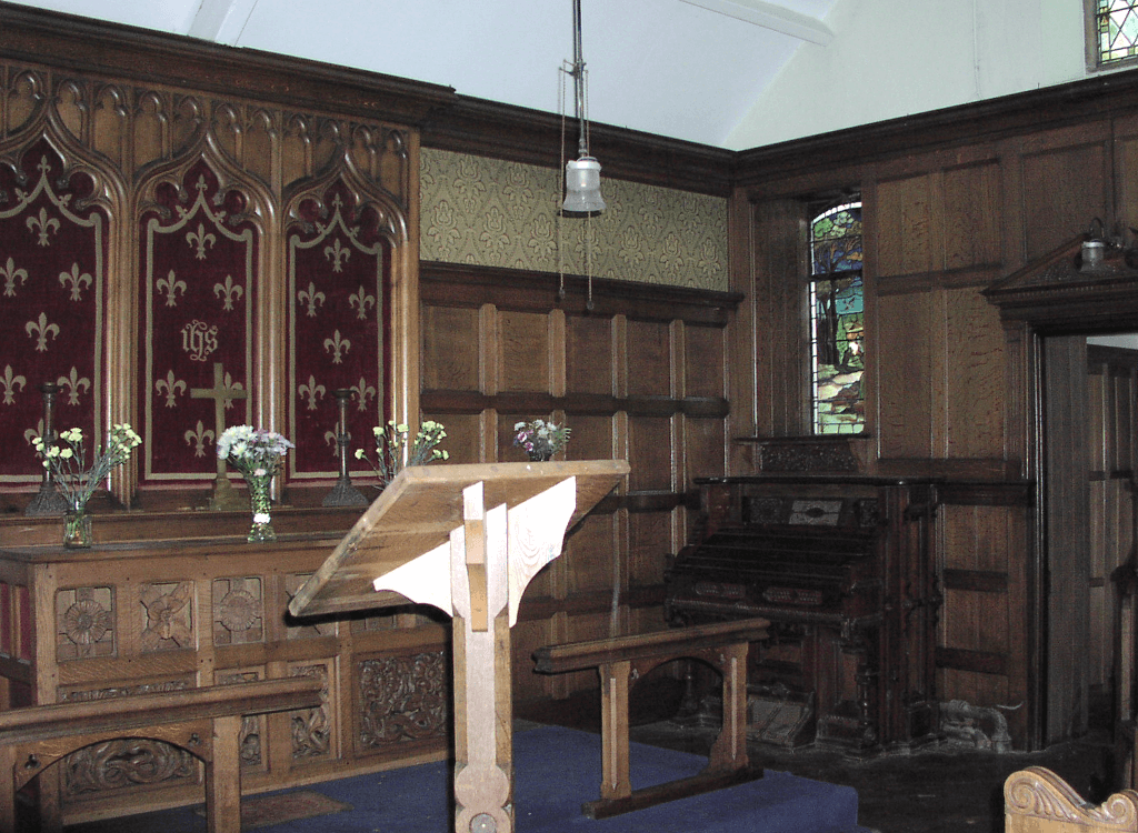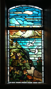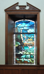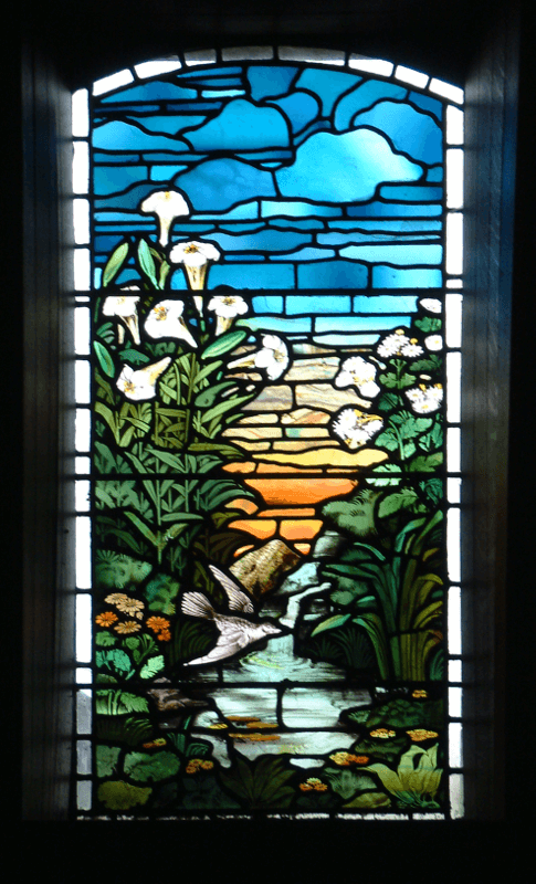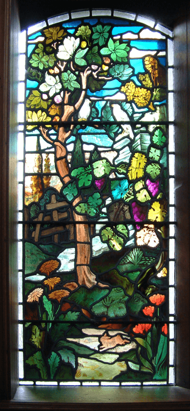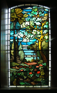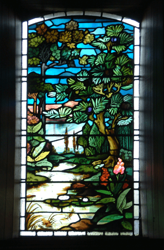 The stained glass windows, designed by Frederick George Simon,were installed when the church was altered in the early 1900’s. They are unusual in that, instead of religious themes. most of them depict scenes of nature, including river scenes, trees, plants, and birds and animals found in the surrounding area.